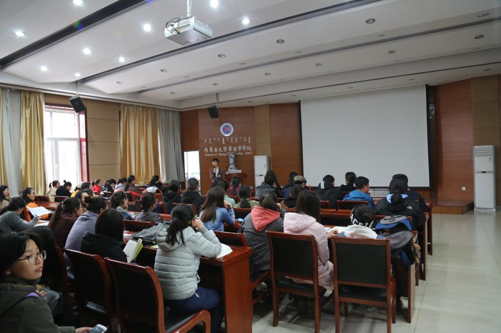 近日,威廉希尔中文网站教务办在蒙学楼一楼报告厅组织举办了两场归国职工留学经验汇报会。由公司2016年赴蒙古国国立大学和韩国檀国大学交流学习的本科生进行留学经验汇报,威廉希尔中文网站副经理苏德毕力格教授出席汇报会、教务办副主任宝勒尔老师、教务办乌日嘎其其老师以及公司2016、2017级本科生听取汇报。