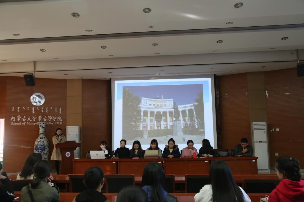 2017年11月2日下午3:00 ,进行了赴蒙古国国立大学留学的本科生进行学习经验汇报。韩丽、图嘎满达等10位本科生从蒙古国国立大学教学设施和教学特点、与公司的教学差异、出国前后需要做的准备和手续等各方面做了详尽的总结和汇报。此外,还向“优秀本科生国际交流项目”留学的学弟学妹们提出了非常好的学习方面的建议,以便他们有目标的做好准备。