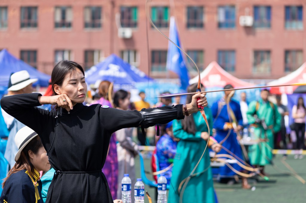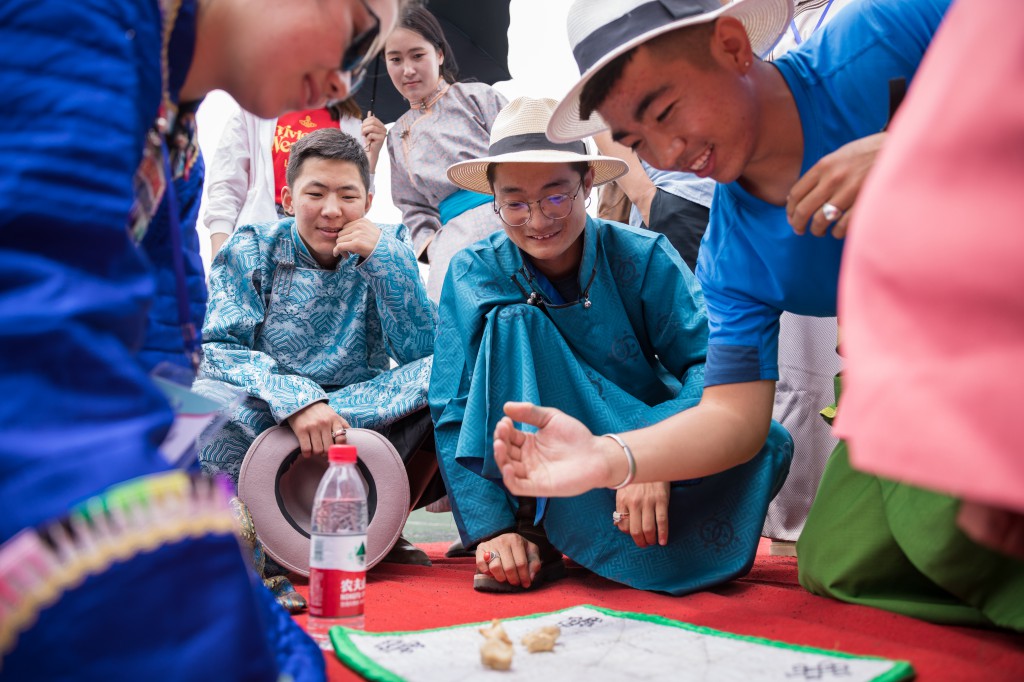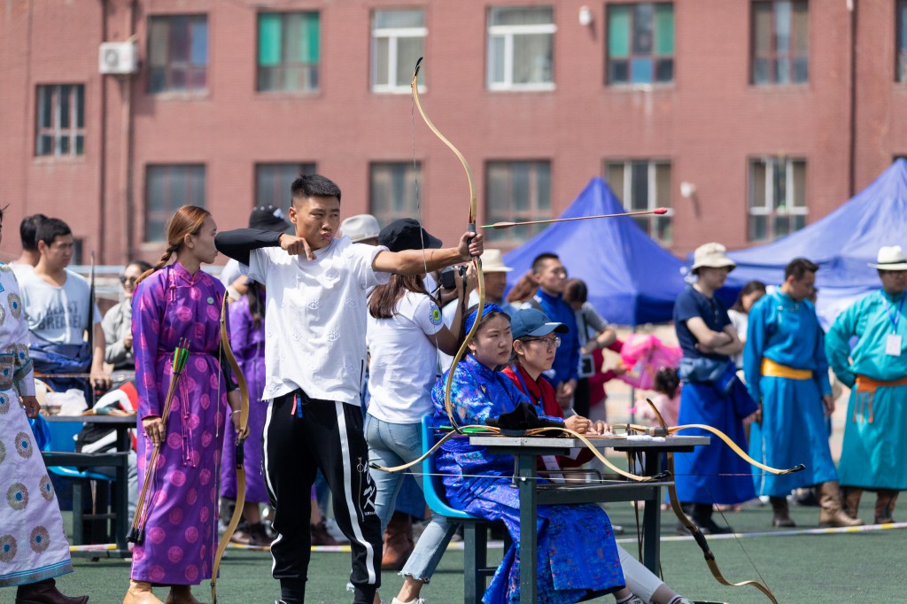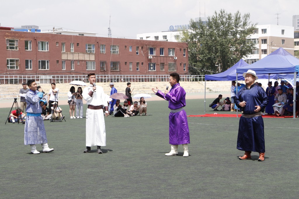 开幕式结束后,紧接着进行校园文化那达慕。内容包括搏克比赛、射箭比赛、蒙古象棋和沙嘎比赛等四项,前来观看搏克比赛的观众围成了体育场前半场。
