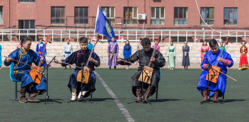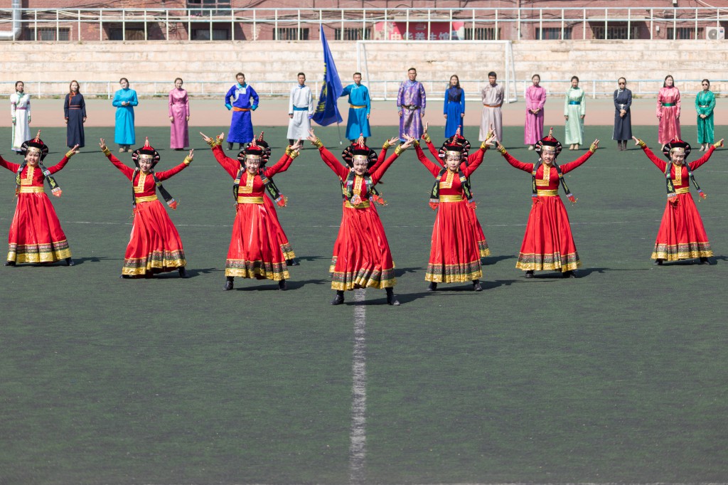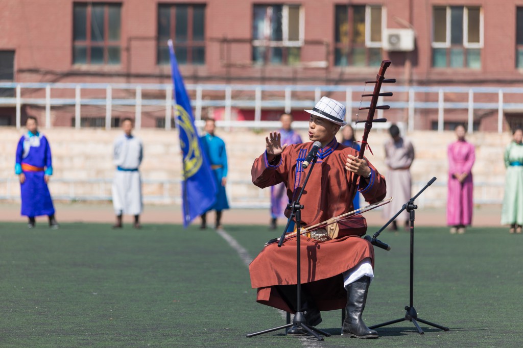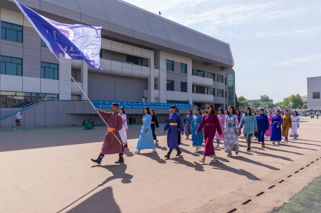 首先,进行了“校园文化那达慕”开幕式。身着民族服装的搏克队、射箭队以及其他各社团代表队依次入场,面对主席台站成了弓形阵势。紧接着开始了开幕式文艺表演,马头琴“鸿雁”及“万马奔腾”、胡仁乌力格尔“江格尔”、舞蹈“贝勒格”充分展现了蒙古族优秀传统文化的魅力和新时代老员工的精神面貌。