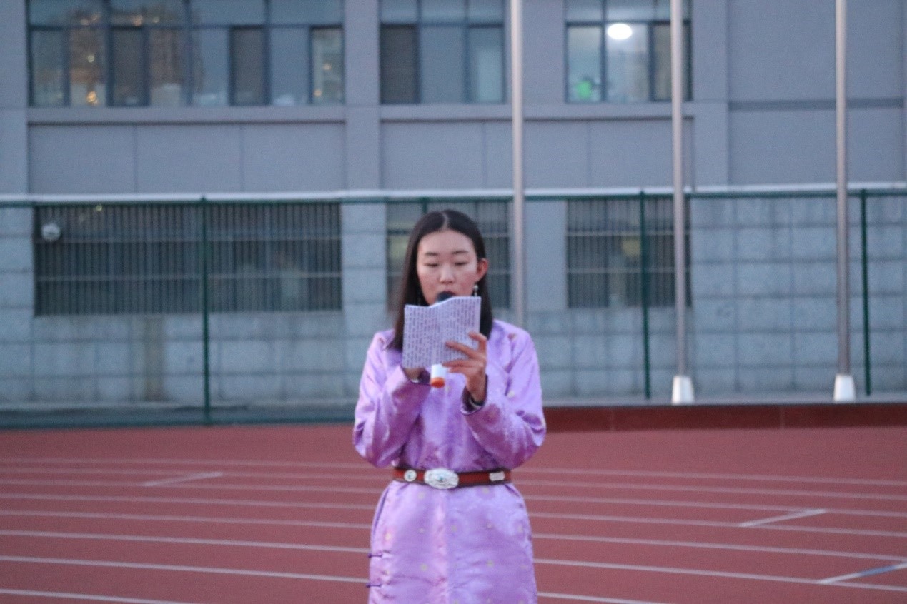 围绕“我与祖国共奋进”这一主题,由威廉希尔中文网站2016级历史学(蒙授)专业员工雅如歌同学做了国旗下演讲。演讲中她充分表达了生逢新时代的骄傲和感恩,激情满怀的表示作为当代青年,要热爱新时代、把握新时代、建功新时代。她讲到,自己是一名推免保送至北京大学继续读研的即将毕业的本科生,今后更要学好知识,打好基础,增长才干,与祖国共奋进,为中华民族伟大复兴中国梦贡献自己的智慧和力量。