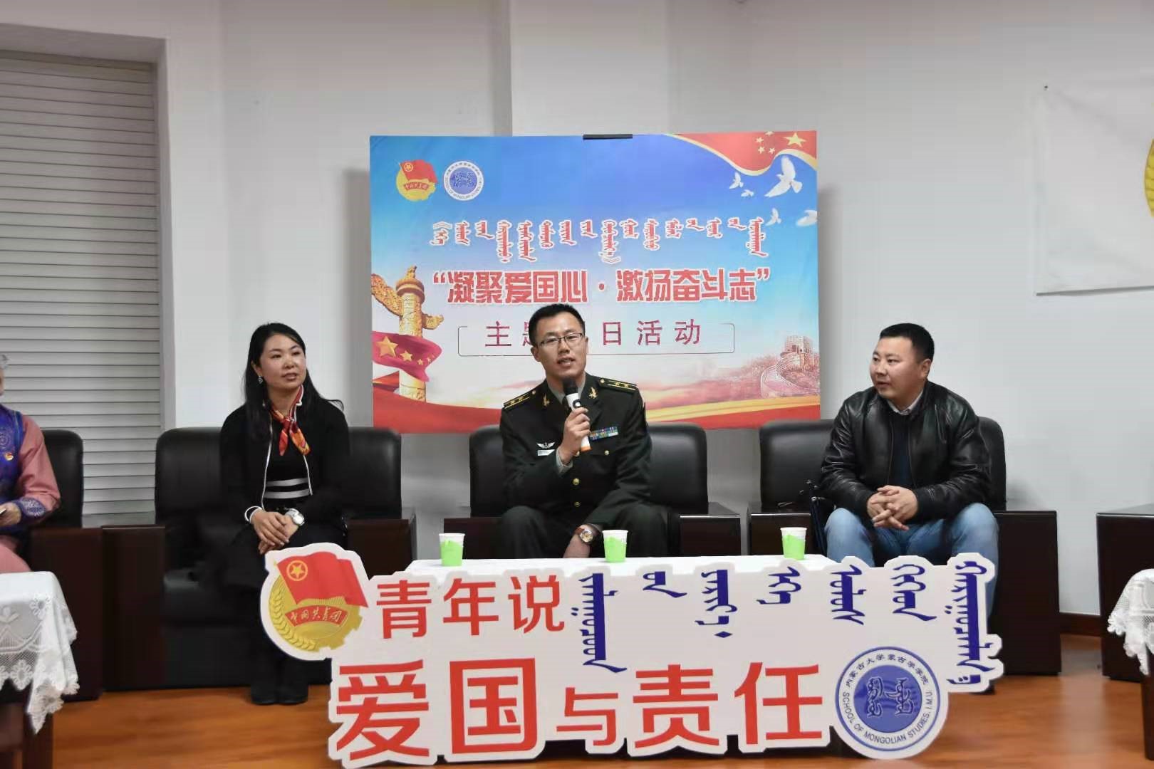 11月13日下午,威廉希尔中文网站第十二期青马班团支部开展“凝聚爱国心•激扬奋斗志”主题团日活动,邀请优秀员工宝林做“爱国与责任”主题讲座。学校团委书记阿古拉、公司党总支副书记萨奇尔出席活动,青马班所有成员及党员代表2016级国防生30余人参加。
