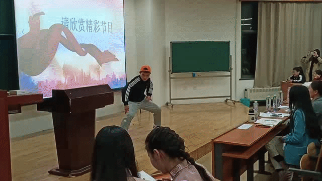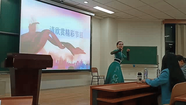 中场休息之时由文艺部的张杜睐娜同学与布仁白音拉同学带来了精彩的舞蹈表演。
