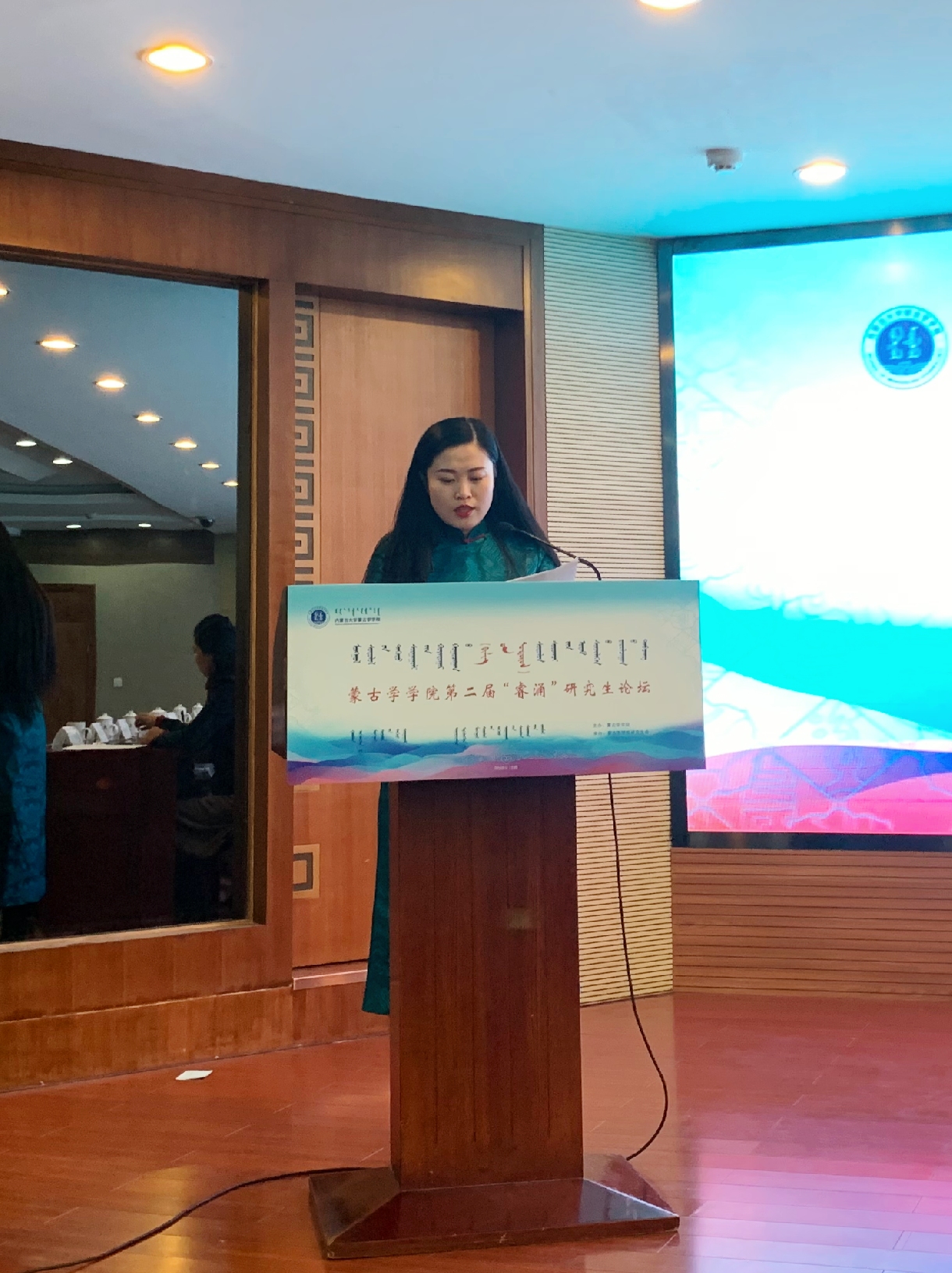 开幕式上,副经理额尔敦哈达教授代表学院班子致辞,讲到“论文写作是读书的延续,是提高读书质量的好办法。学术论坛是提炼高质量论文的有效途径,是开展学术交流的绝好平台”,表示学院通过举办研究生论坛,营造浓厚的学术氛围,为广大研究生拓宽学术视野、追求学术精神、勇于创新创造提供平台,希望同学们珍惜机会,勇攀学术高峰。博士研究生关图雅作为员工代表发言。