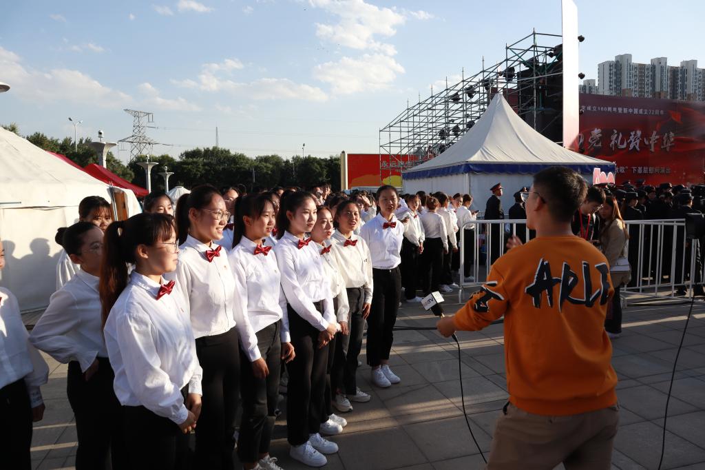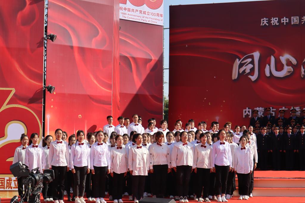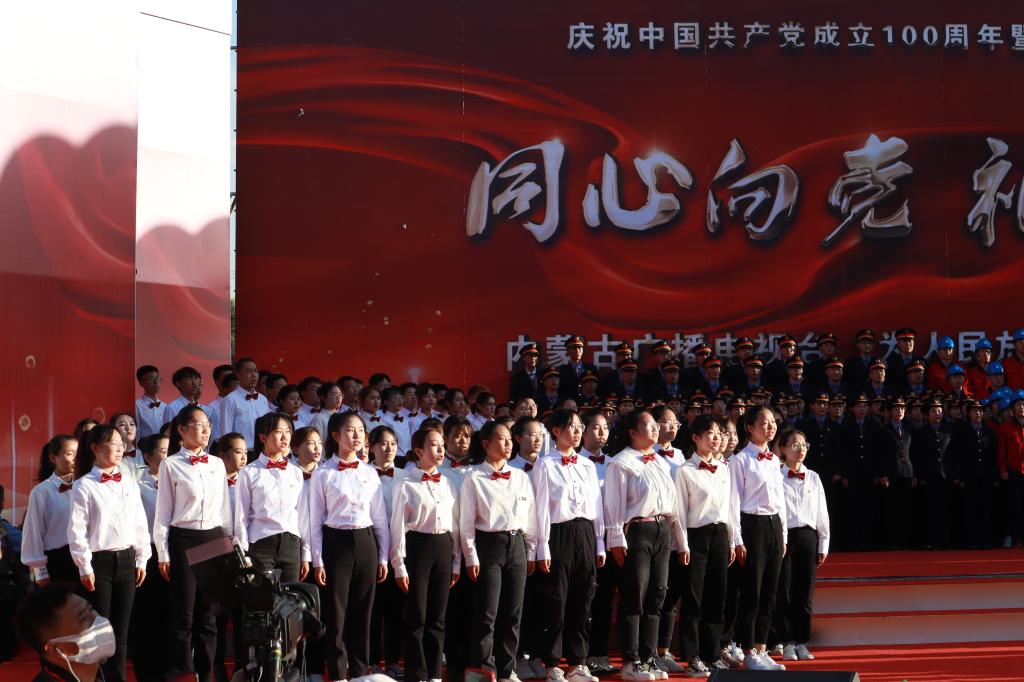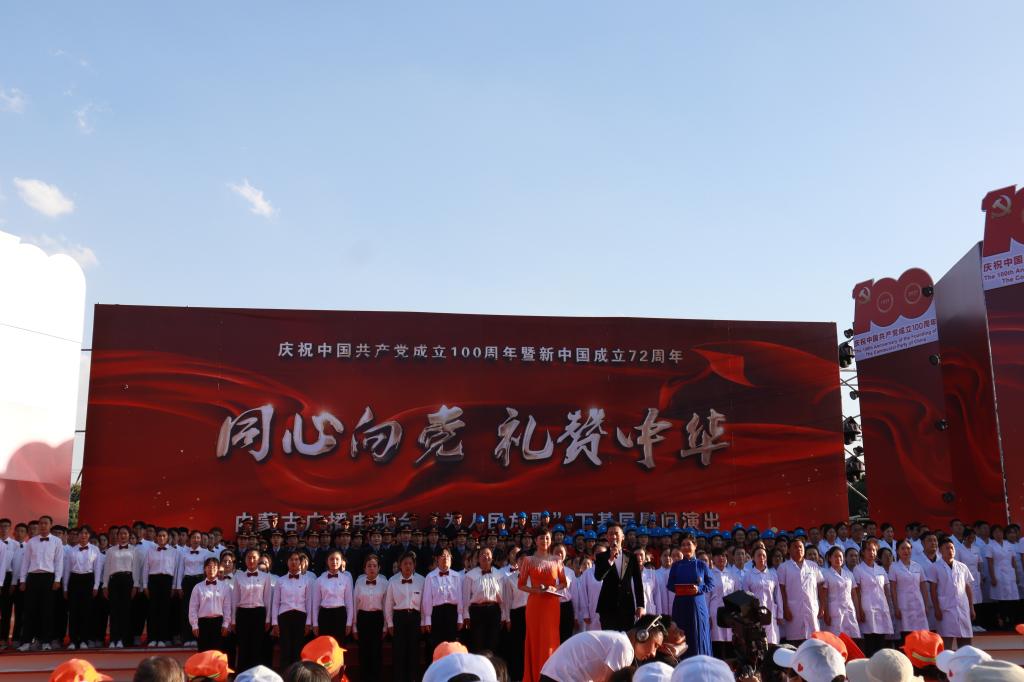 为庆祝中国共产党成立100周年暨中华人民共和国成立72周年,9月30日,由内蒙古广播电视台举办的“同心向党 礼赞中华”基层慰问演出活动在呼和浩特宝鼎广场举行。公司同学在《没有共产党就没有新中国》大合唱及演出最后的《歌唱祖国》大合唱中用精彩的演出表达了自己对伟大祖国的祝福。