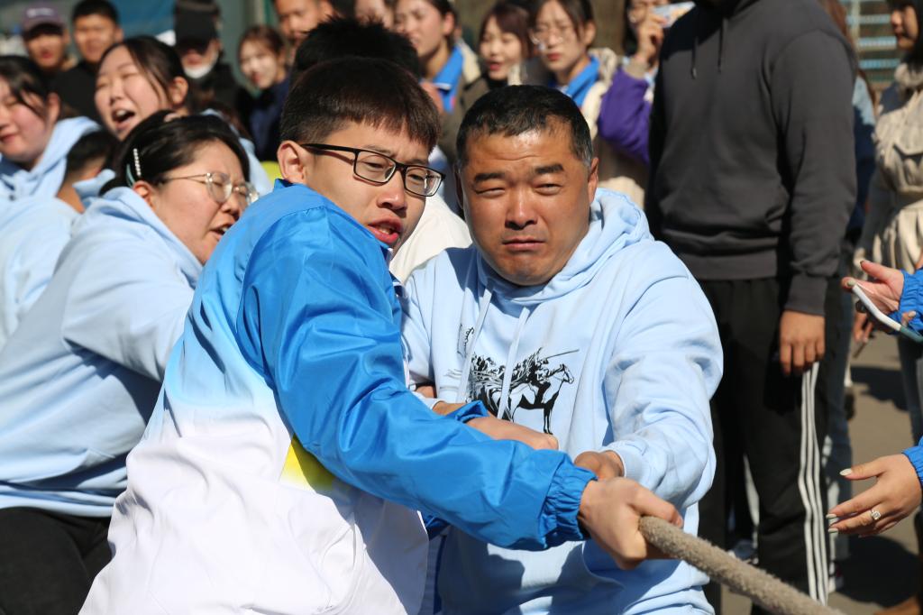 17日上午,绑腿跑和班级拔河比赛紧张而有序的展开。绑腿跑,同心同力,势在必得;拔河赛,紧握长绳,一同发力。这样的集体赛事,充分展现了集体荣誉感与责任感,凝聚在一起的不仅是同学们的力量更是紧贴在一起的心。当汗水和呼喊声覆盖了整个比赛场地,也促进了各民族员工团结互助,同向同行,共圆伟大中国梦的信心和决心。