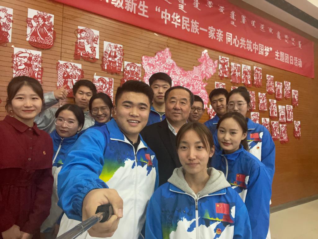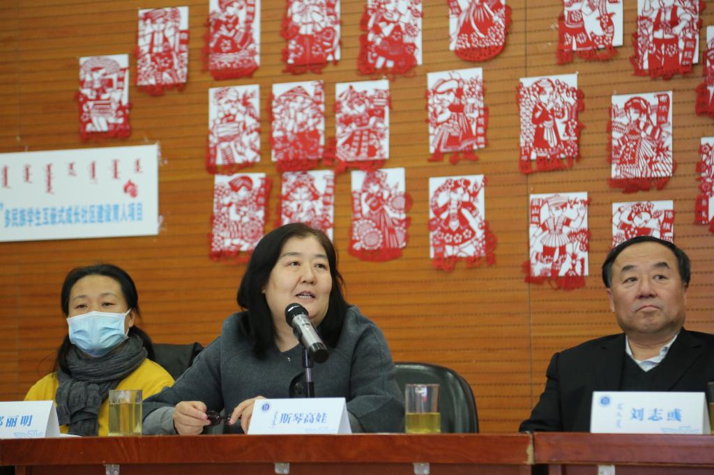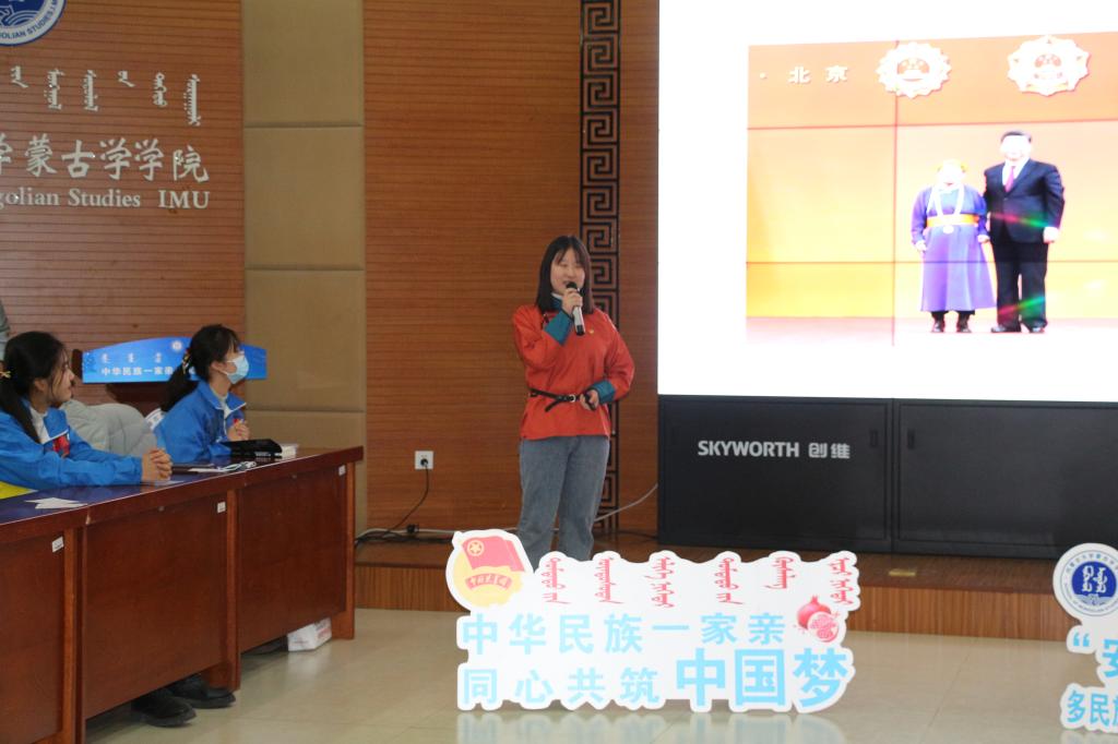 威廉希尔中文网站2021级中国少数民族语言文学(蒙古语言文学基地班)和中国少数民族语言文学(蒙古语言文学班)两个结对子班级共同举办的“中华民族一家亲 同心共筑中国梦”主题团日活动于2021年12月23日下午4:30在威廉希尔中文网站进行。公司党委书记刘志彧、宣传部部长李为民、统战部部长斯琴高娃、教务处副处长郑丽明、员工工作处副处长郭晓飞、团委副书记周林娟以及公司党委书记金虎、常务副经理吴英喆、副书记萨奇尔和部分班主任、辅导员参加。