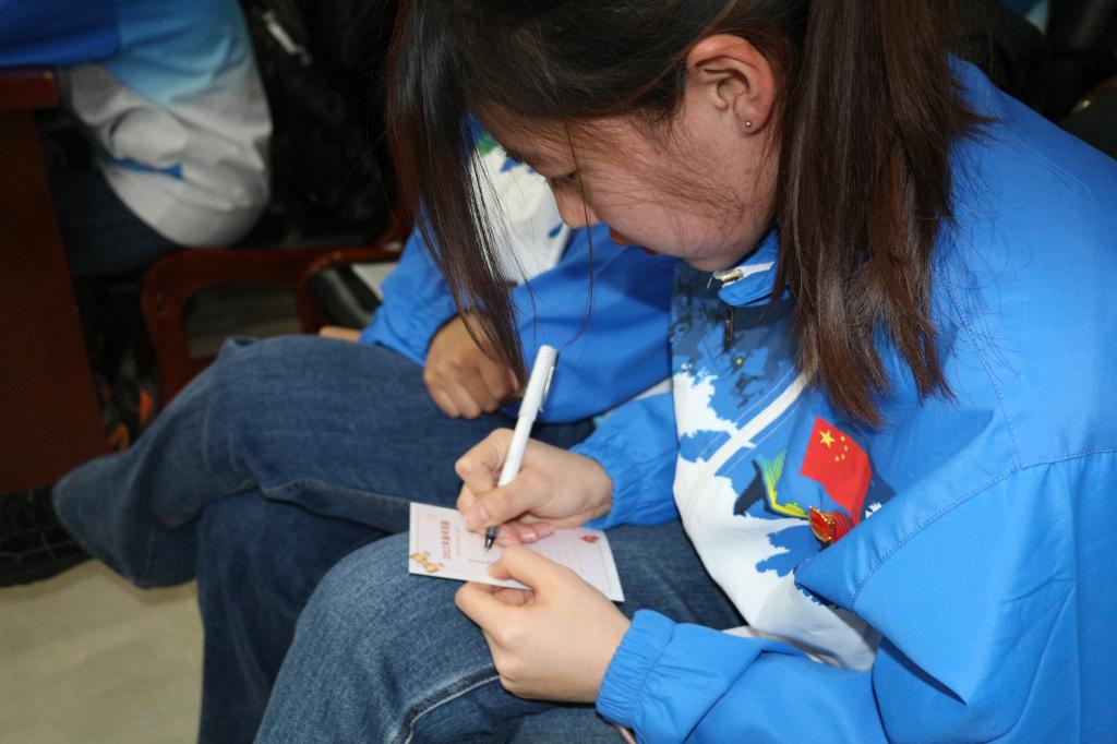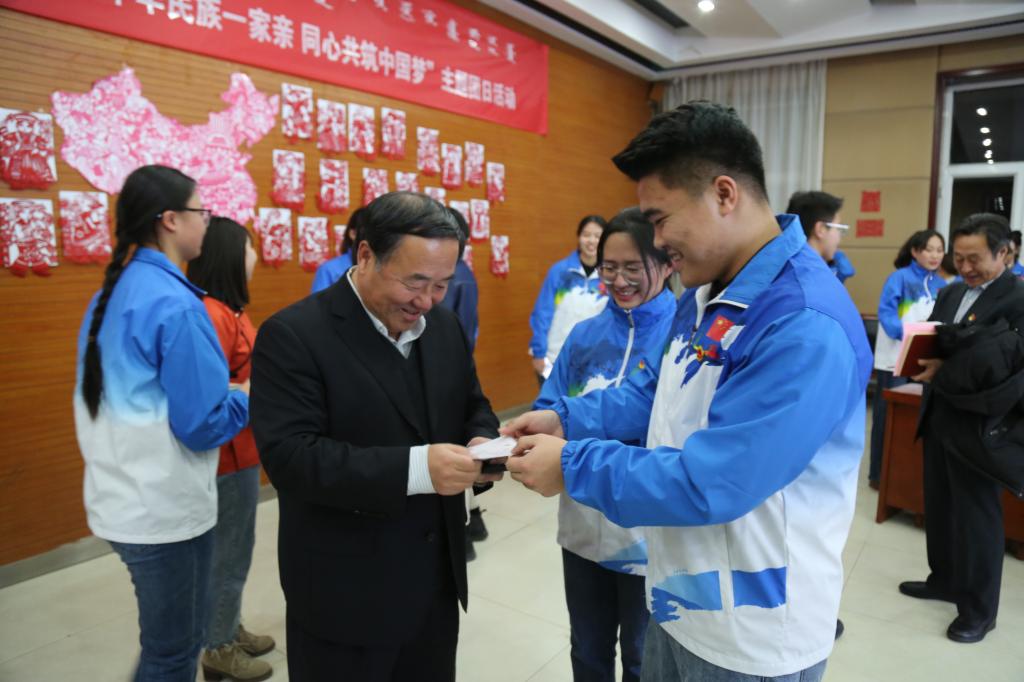斯琴高娃部长例举著名学者郝苏民、贾晞儒、陈乃雄先生的励志故事,鼓励同学们学好知识、打好基础,将“小”我融入“大”我,为党和国家的事业贡献力量。李为民部长回忆童年的温馨故事,讲述民族团结大家庭带给自己的温暖回忆,表达亲情是各民族间的精神纽带。老师们为同学送上了真挚的寄语,同学们也通过精心设计的卡片写下了对老师们的祝福。