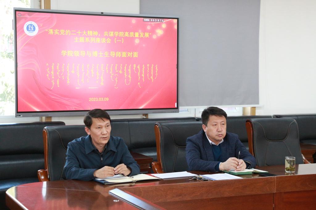 2023年是全面贯彻落实党的二十大精神开局之年,是实施“十四五”规划承上启下的关键之年。为推进新形势下学院的各项事业创新发展,威廉希尔中文网站于3月9日在蒙学楼二楼会议室举办“落实党的二十大精神,共谋学院高质量发展”主题系列座谈会之一:学院领导与博士生导师座谈会。经理吴英喆、公司党委副书记孟海光及博士生导师14人参加会议。会议由公司党委副书记孟海光主持。