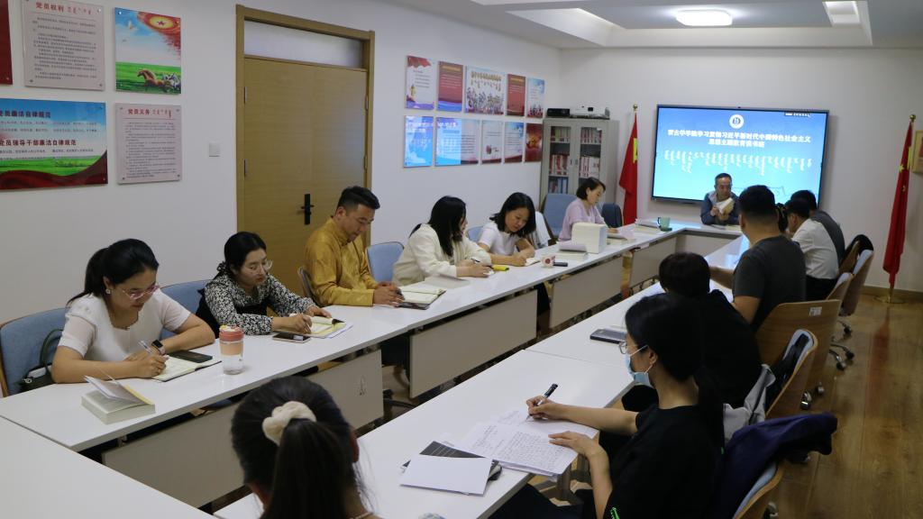 2023年05月24日晚7:00,威廉希尔中文网站在蒙学楼206会议室举行学院学习贯彻习近平新时代中国特色社会主义思想主题教育读书班第四次集中学习,由副经理敖特根白乙拉教授做专题领学。公司党委书记八格主持学习。学院理论学习中心组成员参加学习。