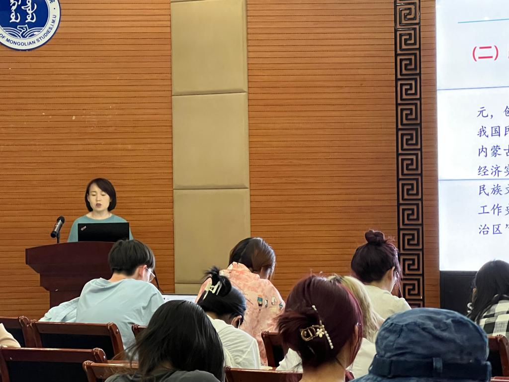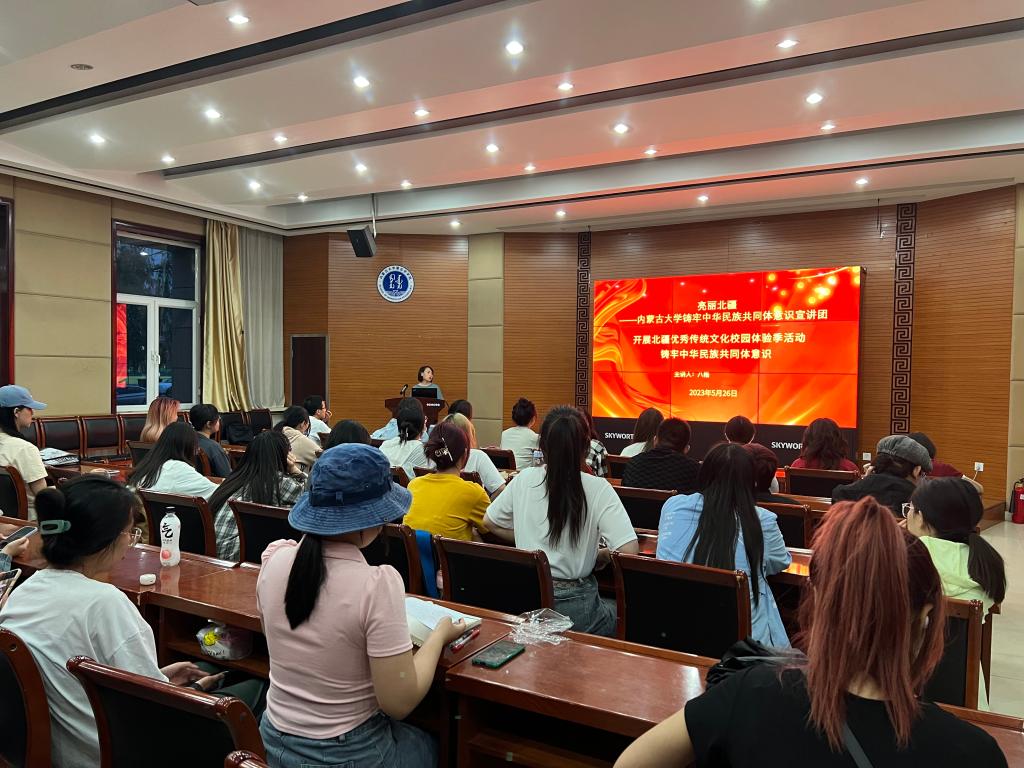 2023年5月26日晚19:00,威廉希尔中文网站在蒙学楼一楼报告厅举行“亮丽北疆”铸牢中华民族共同体意识宣讲第五次讲座。由公司党委书记八格做了《深化团结进步教育,铸牢中华民族共同体意识》主题讲座,学院中国少数民族语言文学(蒙古语言文学)专业本科生听取讲座。八格书记以铸牢中华民族共同体意识为主线,从中华民族共同体意识的提出及其内涵;深刻把握中华民族多元一体的基本国情;深刻认识铸牢中华民族共同体意识的重大意义;深入践行守望相助理念,全方位建设“模范自治区”等四个方面进行理论总结与实践思考,并强调将铸牢中华民族共同体意识贯穿立德树人的全过程,扎实推进民族团结进步。