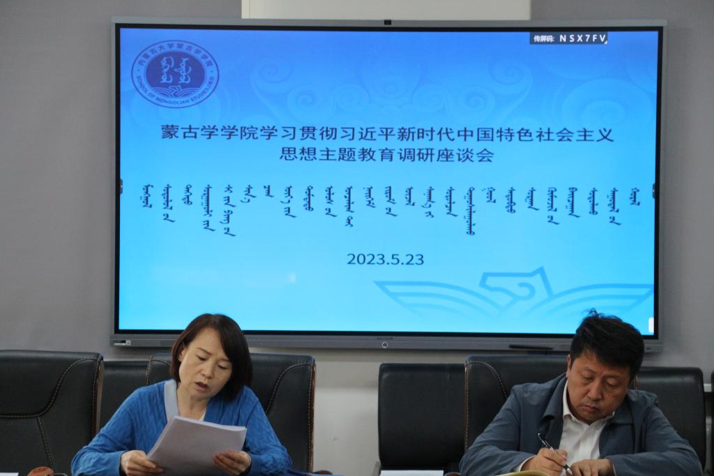 为深入开展学习贯彻习近平新时代中国特色社会主义思想主题教育,按照学院主题教育实施方案及大兴调查研究的安排,2023年5月23日下午,在蒙学楼二楼大会议室,公司领导班子与蒙古语文研究所、蒙古文化研究所、公共课教学部、古典文献学系教学科研人员召开调研交流座谈会。公司党委书记八格、经理吴英喆、党委副书记孟海光、副经理敖特根白乙拉及相关系所、教学部教学科研人员30余人参加会议。会议由公司党委书记八格主持。