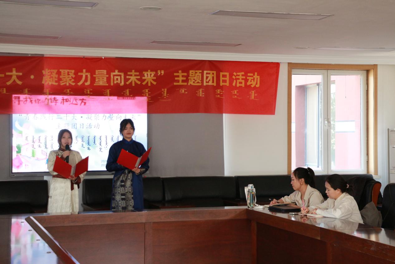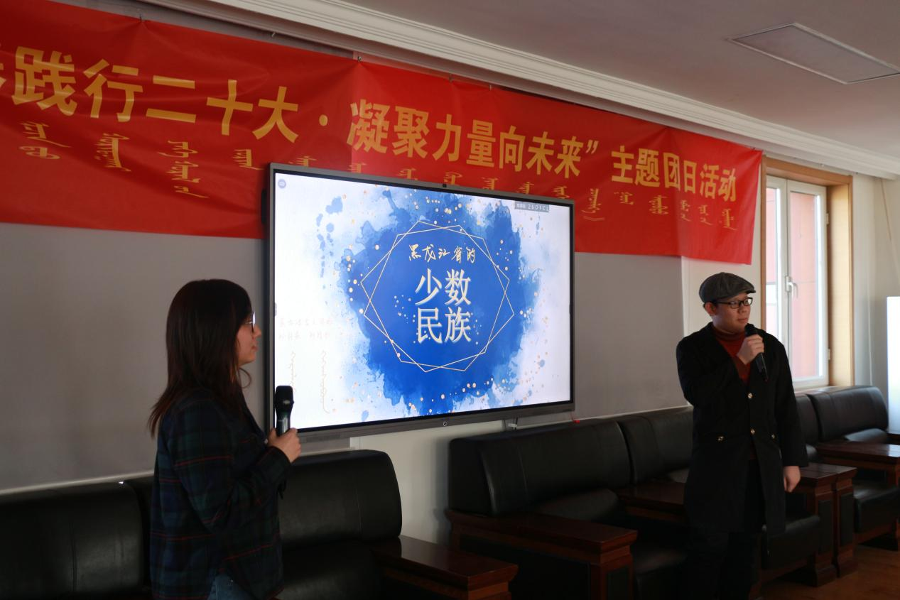 为学习贯彻习近平新时代中国特色社会主义思想,铸牢中华民族共同体意识,畅享时代新声,分享多民族文化,交流学习经验,3月23日下午,中国少数民族语言文学蒙古语言文学专业2021级与2022级两个团支部在蒙学楼大会议室举办“青春践行二十大 凝聚力量向未来”主题团日活动。学院团总支副书记兼学工办副主任宝雾鹰,专职辅导员倪晨阳,2021级班主任乌英嘎出席此次活动,2021级与2022级两个团支部全体同学参加活动。活动由2021级蒙古语言文学团支部张舒然、孟祥骥两位同学的蒙汉双语主持。
